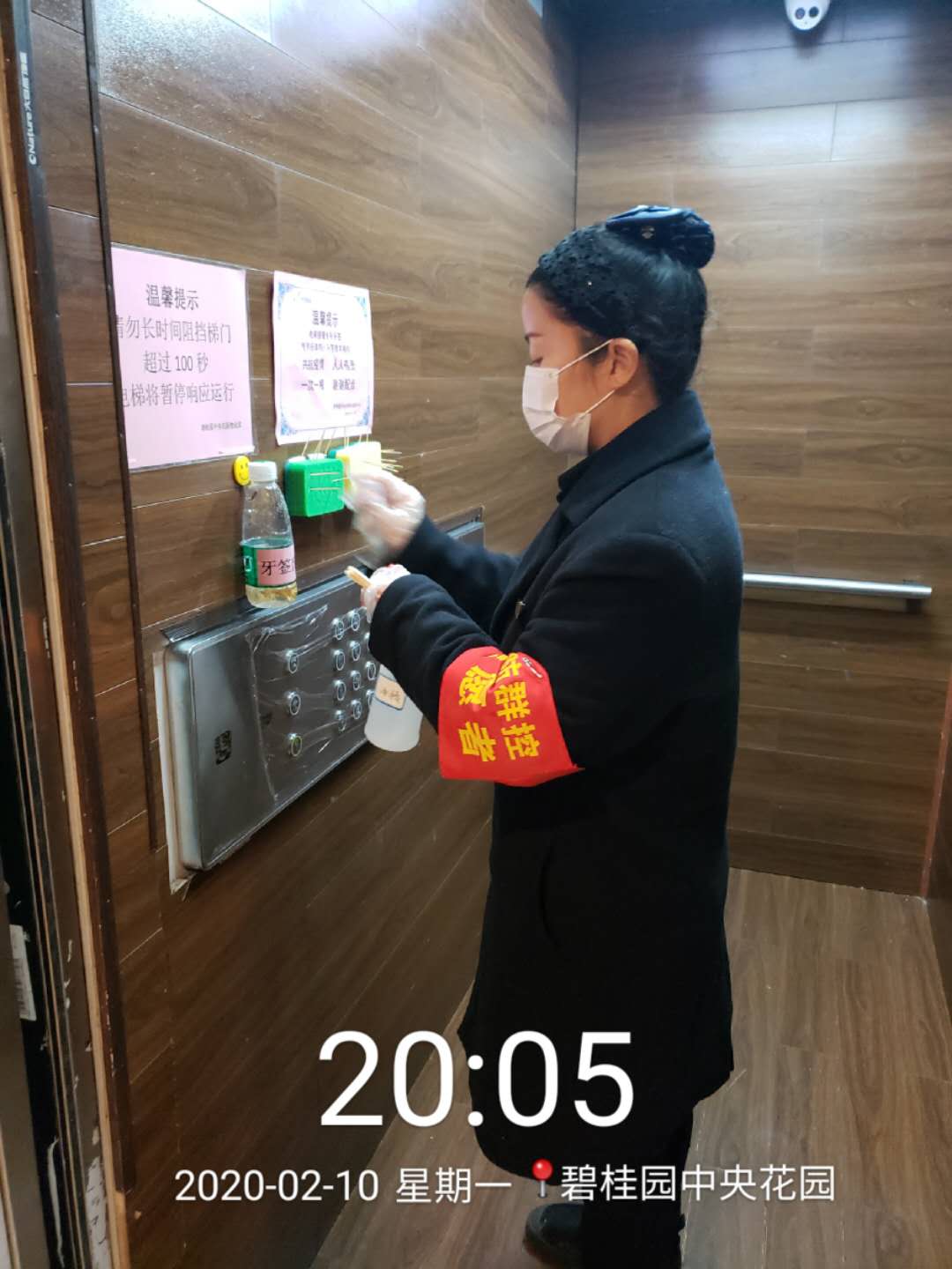 疫情爆发一个多月,每日白天、夜间都会利用专业的消毒工具针对苑区公共区域进行全面消杀。白天分早8点、下午1点和下午四点半三个时间段进行苑区全覆盖喷洒消杀,楼层过道每两天消毒液拖地全覆盖;夜间消杀由物管员从晚八点开始每2小时对电梯、大堂、车库单元通道和生活垃圾桶关键触点部位进行消杀直至到凌晨为止。