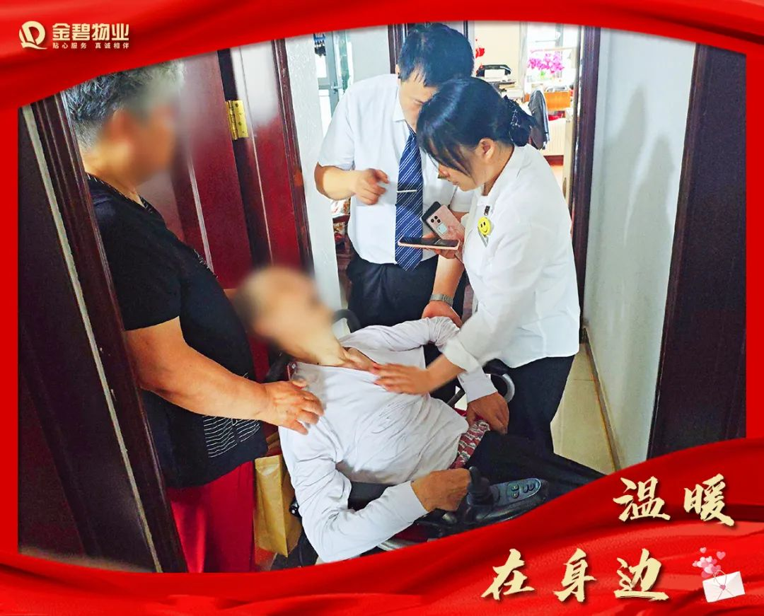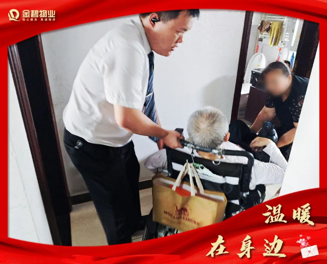 中午,他婉拒了业主请吃饭和支付车费的好意,自费打车将老人安全送回家。