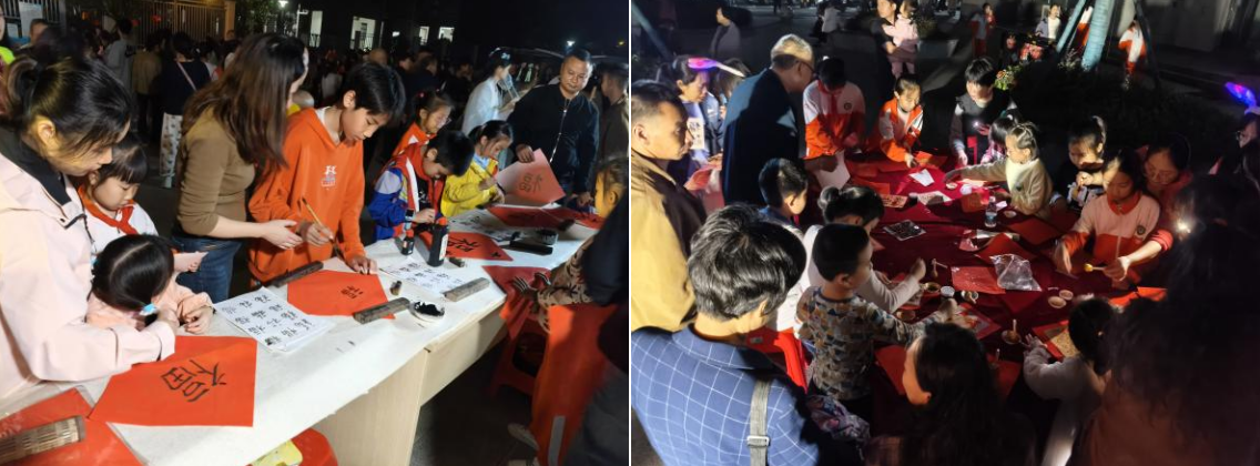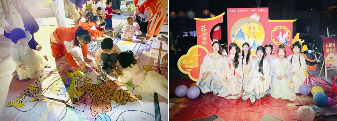 各小区里,一场充满传统文化韵味的邻里盛会温馨上演,社区居民、志愿者及党员们欢聚一堂,共庆佳节。活动现场不仅有精彩纷呈的文艺表演传递东方美学,更设有多个沉浸式主题体验区:中秋主题打卡点定格温馨笑脸,古法拓印DIY体验非遗技艺,露天电影《哪吒》吸引全家驻足,而众人共绘的《祖国盛世》长卷则用斑斓色彩凝聚家国情怀。