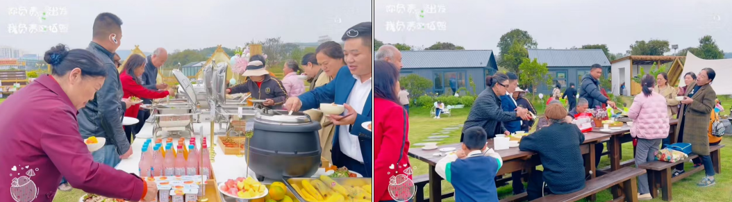 丰盛的自助餐饮与烧烤盛宴为活动增添了更多暖意。农场自种的鲜蔬菜、地道家常菜搭配甜汤与应季水果,每一口都充满自然的本味。长者们围坐在一起,一边享用美食,一边畅谈生活趣事,话题从孙辈的成长聊到小区的变化,温馨的氛围感染着在场的每一个人。