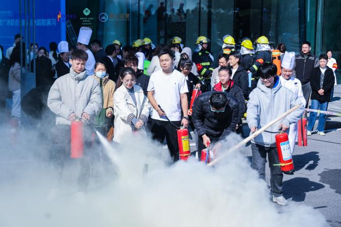 “一摇、二拔、三压、四喷”灭火器使用口诀通过实时操作的方式,将知识化作行动力量,提升各业态人员的实际作战能力,把安全内化于心、外化于行。